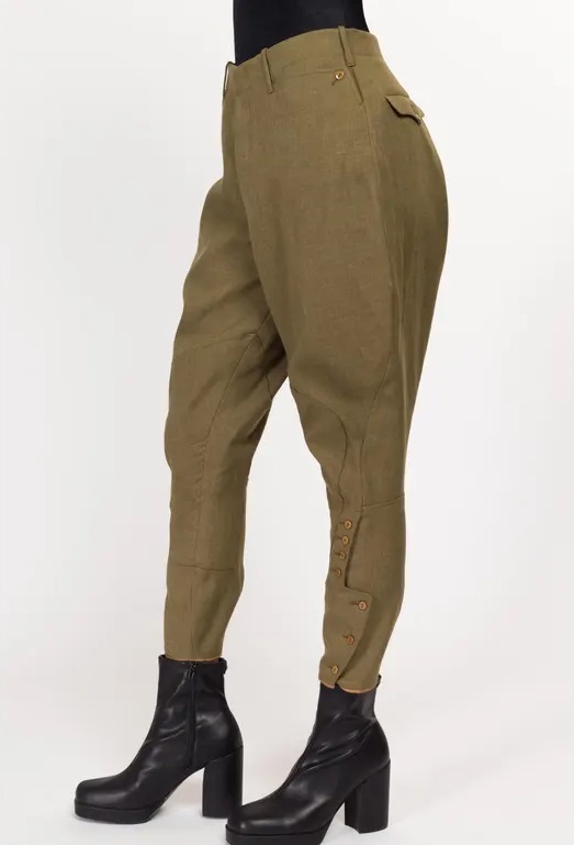 Men/Women 1940s Army Jodhpur button fly, hip pockets 3/4 Length High Waisted Breeches made from khaki color cotton fabric.
